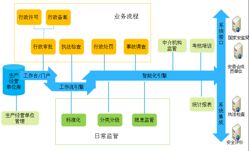 依托國家和地方政務(wù)信息資源,建成覆蓋全省各級安全生產(chǎn)監(jiān)管部門、各級安委會成員單位之間互聯(lián)互通的信息網(wǎng)絡(luò)平臺和安全,本系統(tǒng)將建立統(tǒng)一的企業(yè)信息服務(wù)交互出口,向企業(yè)采集相關(guān)信息,并提供安監(jiān)信息服務(wù),實(shí)現(xiàn)隱患排查治理、監(jiān)管監(jiān)察、應(yīng)急救援等業(yè)務(wù)工作的數(shù)字化、流程化、網(wǎng)絡(luò)化和智能化管理。建立資源共享、應(yīng)急協(xié)同機(jī)制,實(shí)現(xiàn)安監(jiān)系統(tǒng)與安委會成員單位之間的資源共建共享,信息互通,技術(shù)相互支持、展開聯(lián)合應(yīng)急行動、共同應(yīng)急處置,從而進(jìn)一步提高應(yīng)急反應(yīng)速度和應(yīng)急處置能力,有效降低和減少重特大安全生產(chǎn)事故和其他突發(fā)事件帶來的影響和損失。
