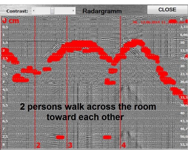 該裝置的操作原理是操作者將天線模塊導(dǎo)向墻壁。 然后即可在計(jì)算機(jī)屏幕上觀察當(dāng)物體在墻后移動(dòng)時(shí)反射信號的雷達(dá)圖的變化。