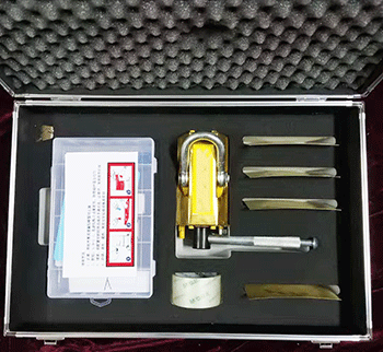 表面采用防爆鋁青銅材質(zhì),內(nèi)部利用超強(qiáng)永磁體對鋼鐵容器的吸附力,通過操縱手柄控制工作面上的磁通量,吸住泄漏的有磁金屬表面,達(dá)到工具和泄漏本體之間的壓合和釋放。仿形壓片,是在墊在磁壓堵漏器本體與泄漏口之間的薄板,用它可彌補(bǔ)二者之間的空隙,減小磁阻,改善堵漏膠的分布狀態(tài)??焖俣侣┠z調(diào)均勻后堆向泄漏口,同時扳動通磁手柄,可阻止內(nèi)壓液體流出,讓膠體有時間凝固,數(shù)分鐘內(nèi)膠固化后,堵漏即告完成。堵漏膠和密封劑能承受水、油、液化氣、30%硫酸、30%鹽酸、氫氧化鈉、飽和氯化鈉溶液的侵蝕。