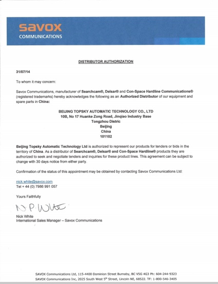 2014年7月31日 ,北京凌天成為 加拿大SAVOX 公司 生命探測儀 一級代理