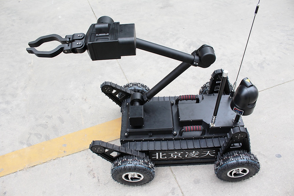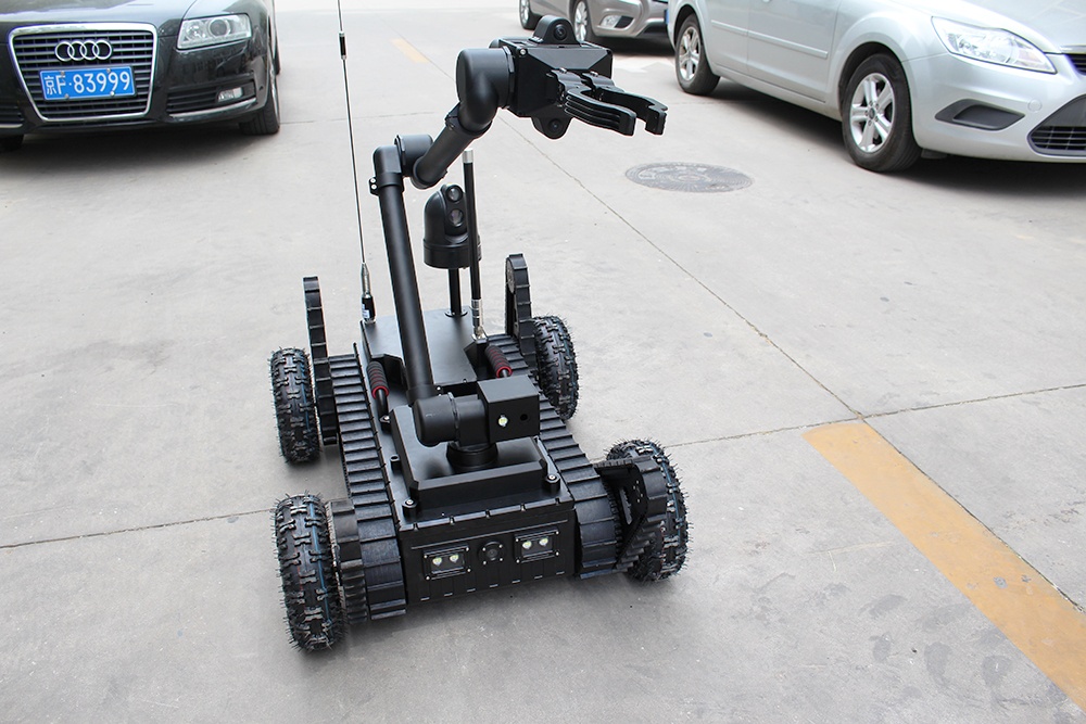 機械臂部分配備爆炸物銷毀器、瞄準器,能現(xiàn)場對爆炸物進行摧毀;