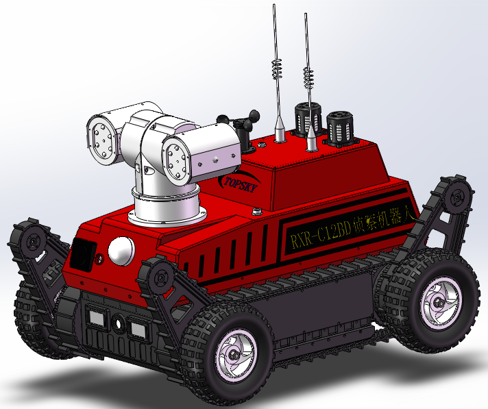 ★結(jié)構(gòu)型式:采用前后4擺臂+履帶+輪胎的結(jié)構(gòu)形式,輪胎可以最大有效提高前進速度、履帶和擺臂適合復(fù)雜地形,可以提高越障性能。