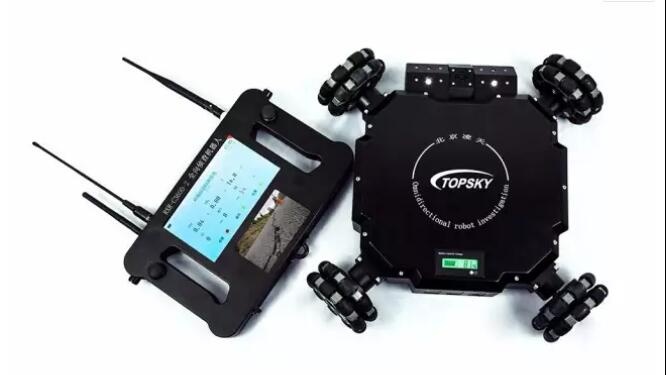 四輪全方位升降偵察機(jī)器人是一款集全方位視頻監(jiān)控、可升降云臺(tái)、有毒有害氣體探測(cè)系統(tǒng)為一體的移動(dòng)偵查平臺(tái)。體積小,有較強(qiáng)的攀爬和越障性能,可部署在狹小空間,威脅、危險(xiǎn)區(qū)域執(zhí)行隱秘偵察和監(jiān)測(cè)任務(wù)。配裝的后場(chǎng)手持終端實(shí)時(shí)顯示移動(dòng)端全景圖像,操作人員可以隱蔽觀察控制,通過(guò)手持端圖像或數(shù)據(jù)信息完成前端環(huán)境判斷,降低了在建筑物、地下室、山洞、隧道、街巷和可疑氣體泄漏區(qū)域內(nèi)行動(dòng)的危險(xiǎn)性。