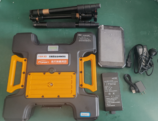 三維雷達(dá)生命探測(cè)儀由三維雷達(dá)探測(cè)器、操作終端(平板)、三角架、備用電池等組成。