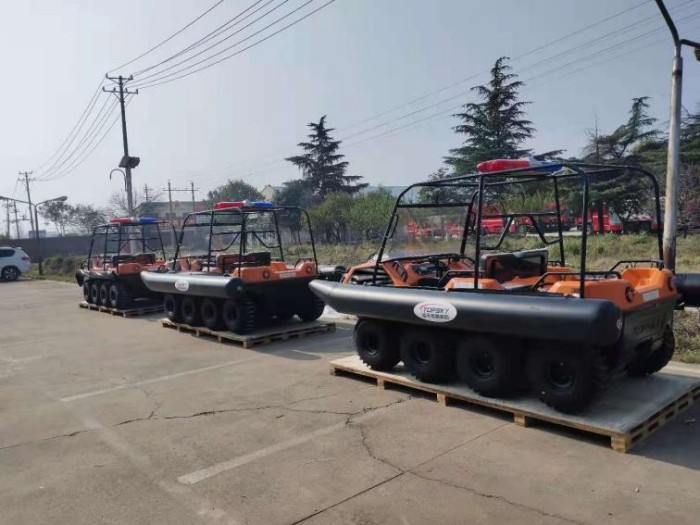 在復(fù)雜惡劣的地形條件和自然環(huán)境下,水陸兩棲全地形車可以讓搜救隊員和攜帶的救援裝備快速到達(dá)救援現(xiàn)場,減少徒步帶來提供消耗,完成最后一公里最好五分鐘緊急救援任務(wù)。水陸兩棲全地形車可配備點(diǎn)到絞盤、救援擔(dān)架組件、探照燈、警示燈、警報器、脫鉤、破拆工具等裝備, 給救援團(tuán)隊提供救援保障,更安全的解救傷員和疏散群眾。