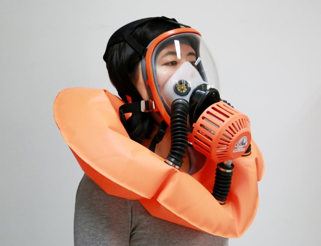 產(chǎn)品采用了航天空氣再生技術、空氣可控緩釋技術、一體化熱控技術,實現(xiàn)了小型化、便攜式、內(nèi)循環(huán)空氣再生,可長時間提供安全、高效、舒適的呼吸防護,核心指標優(yōu)于國家標準及其他類產(chǎn)品約 50% 以上。該產(chǎn)品有效解決了現(xiàn)有過濾式逃生面罩“安全性能極差”、消防呼吸器“使用復雜”、“效費比低”等痛點問題,具備消防火場救援、公眾佩戴逃生自救等多重應急救援功效。