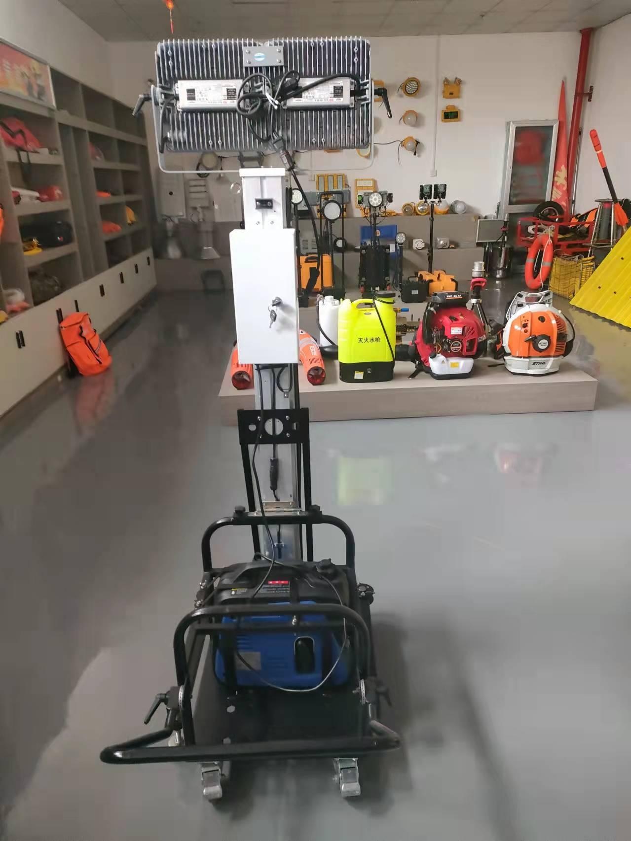一、產(chǎn)品概述 二、適用范圍 消防、應(yīng)急等安全領(lǐng)域 三、產(chǎn)品特點 ●本產(chǎn)品能夠同時滿足皮卡和中小型貨車裝卸,可免工具拆裝成三大部件運輸,避免叉車或吊車裝卸,快捷、高效、安全、經(jīng)濟。 ●10米處照度大于700(lx),0防護等級燈頭IP66,箱體防護等級IPX5,抗風(fēng)等級≥7級;升降模式:一鍵升降,可在任意高度停止;最低收起高度1.4m;最大升起高度5m。 ●桅桿處要有紅藍警示燈;發(fā)電機組類型:汽油變頻發(fā)電機,功率與光源功率匹配;工作噪音:距離發(fā)動機四周,可直接接通220V電長時間照明。 ●組裝要求:底座組件和桅桿組件可快速組裝、拆卸,可單人操作。 ●操作簡單簡潔的控制面板,控制燈具的5米的任意升降停、滿足現(xiàn)場指揮操作的方便性。 ●30米遙控控制燈具升降照明等。
