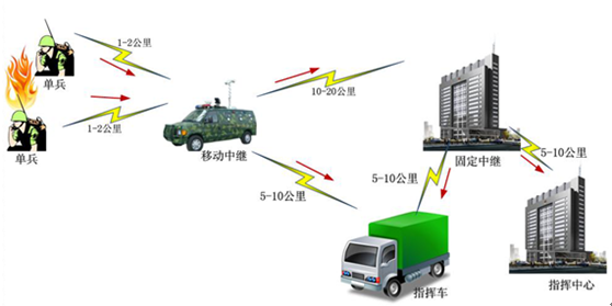 可做單兵發(fā)射-指揮監(jiān)控車或單兵發(fā)射-指揮監(jiān)控中心等應用。